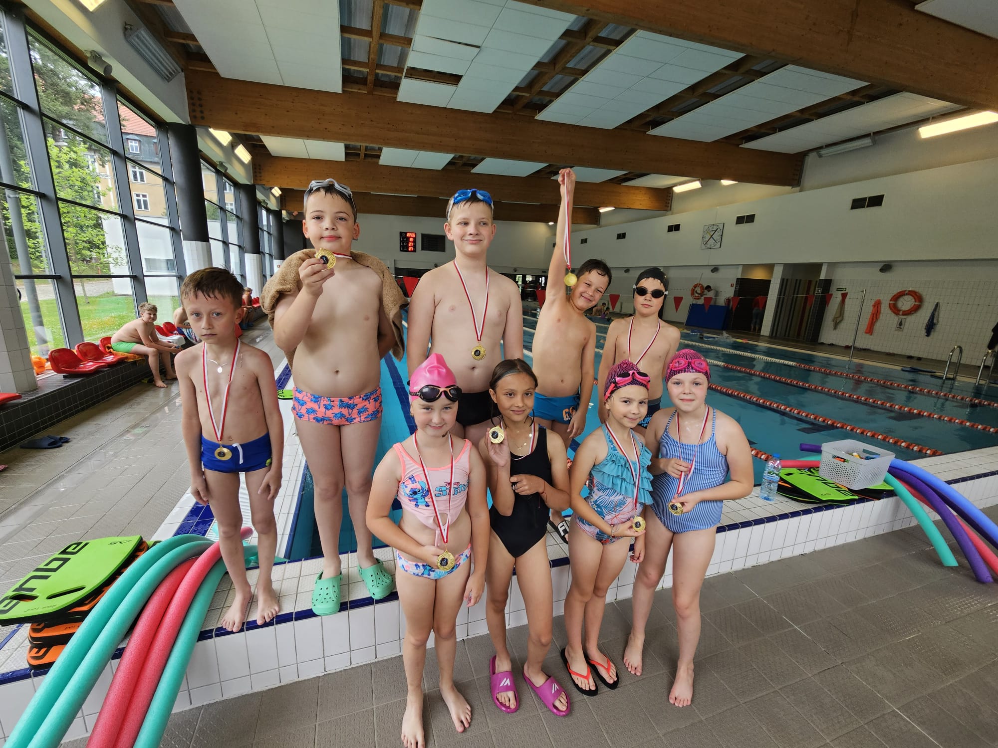 Najważniejsze jednak jest dla nas to, aby każdy uczestnik zajęć pokochał wodę, czuł się w niej pewnie i czerpał z pływania radość. Bo wierzymy, że nauka pływania to nie tylko sport – to także radość, zabawa i miłość do wody na całe życie! 🌊💙